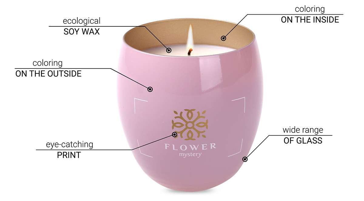 Unlimited possibilities of glass coloring Let your imagination run wild and cover the candle with any Pantone shade. In addition, you can choose one of the phenomenal coloring effects: stunning gloss, noble matt or elegant Soft Touch. |