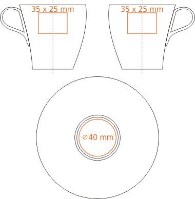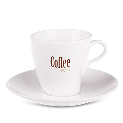 An elegant advertising cup with a slightly leaning shape and a neat handle.