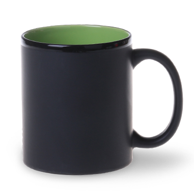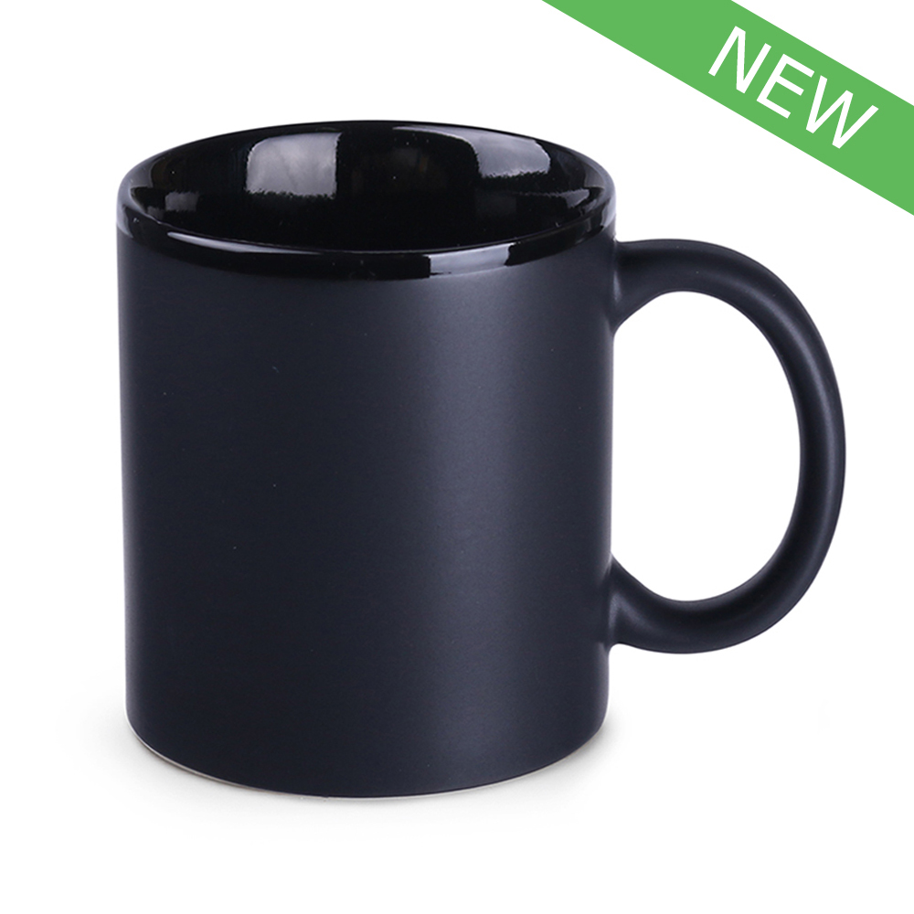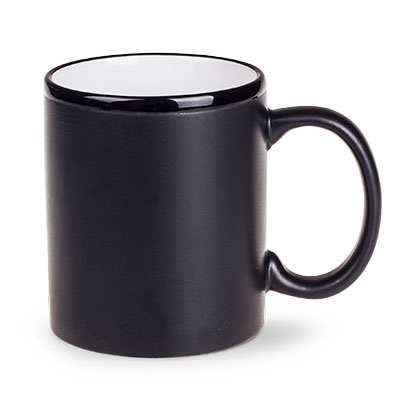 The advertising mug which combines the classic shape with the modern satin glaze technology. The modern look is emphasised by the black, glossy rim.