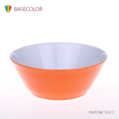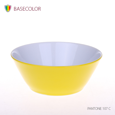 A porcelain bowl made of high quality porcelain. Conoid sides widening towards the top allow for the application of a large and complex print.