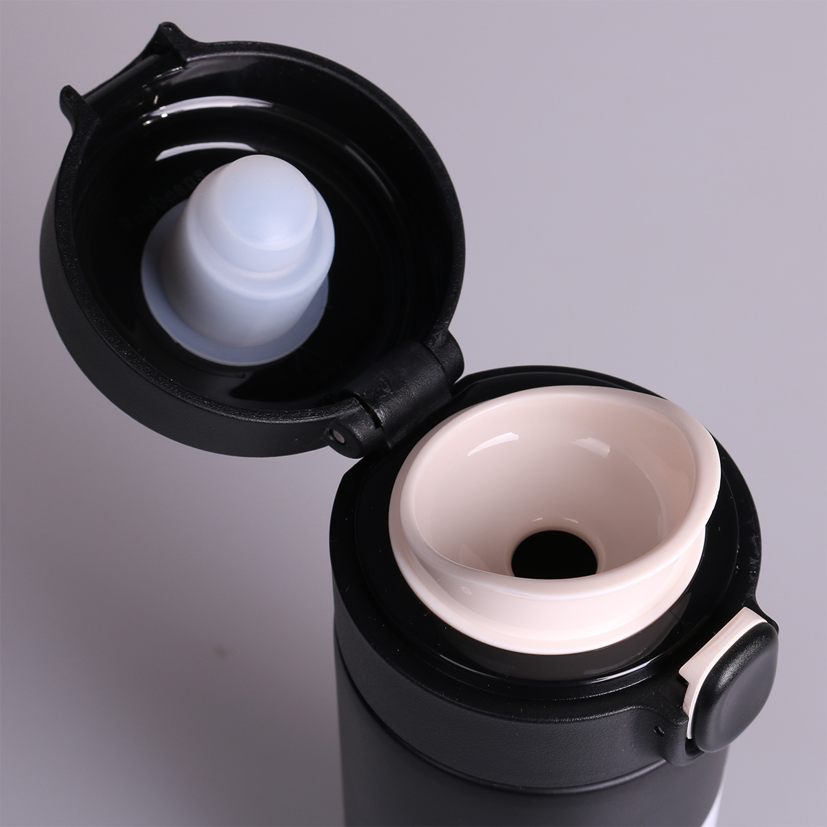 Imagine comfort of drinking without compromise. By choosing Vega thermo mug you are guaranteed high ergonomics and comfort resulting from the use of vacuum insulation, hygienic and extremely comfortable mouthpiece made of a safe and odorless material, convenient „1-click” opening and a lid with „Keep Open” positioning. The model is available in attractive Soft Black color version. The Vega thermal mug is sold complete with standard unit packaging.