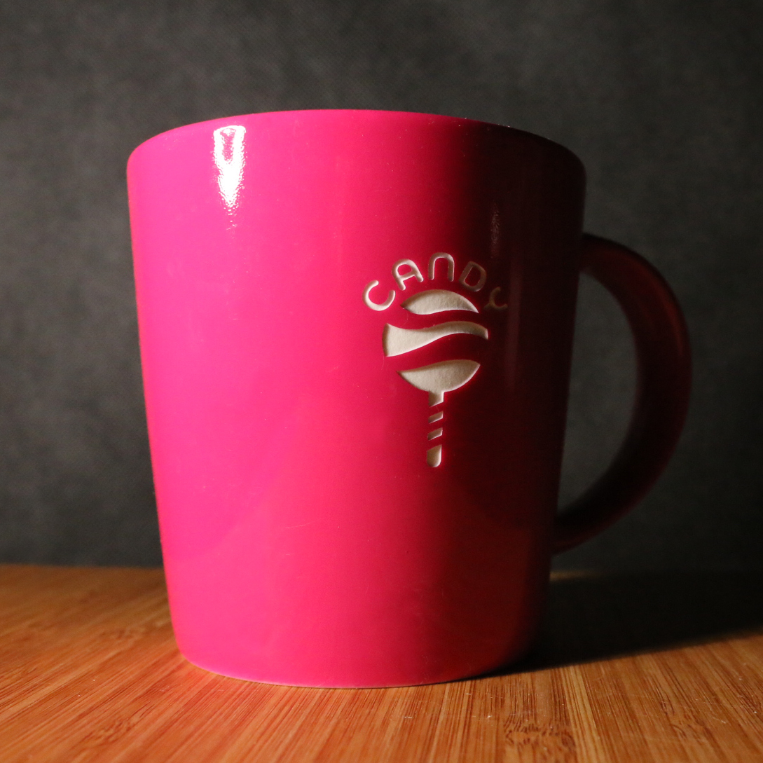 Massive mug with a classic trapezoidal cross-section. The wide handle of the mug provides a stable grip and allows for additional decorations to be placed. Simplicity combined with elegance.