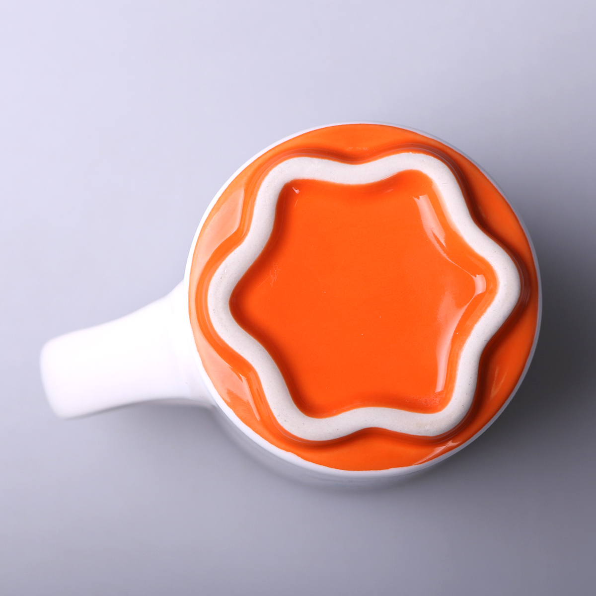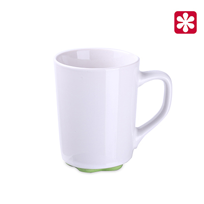 A white mug with an original and interesting bottom available in 5 colors. Simple walls give great possibilities in terms of decorations. This product is from the end of a series and may have pinholes, dots, and variations in glaze shade.