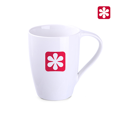 A best-seller model made of white, high-quality porcelain. Thanks to the original wave-shaped handle, it will be a great eye-catcher for your customer's brand.