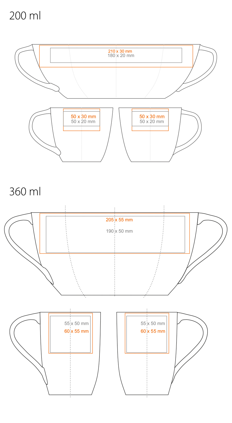 Capacity: 200 / 360 ml Colours: