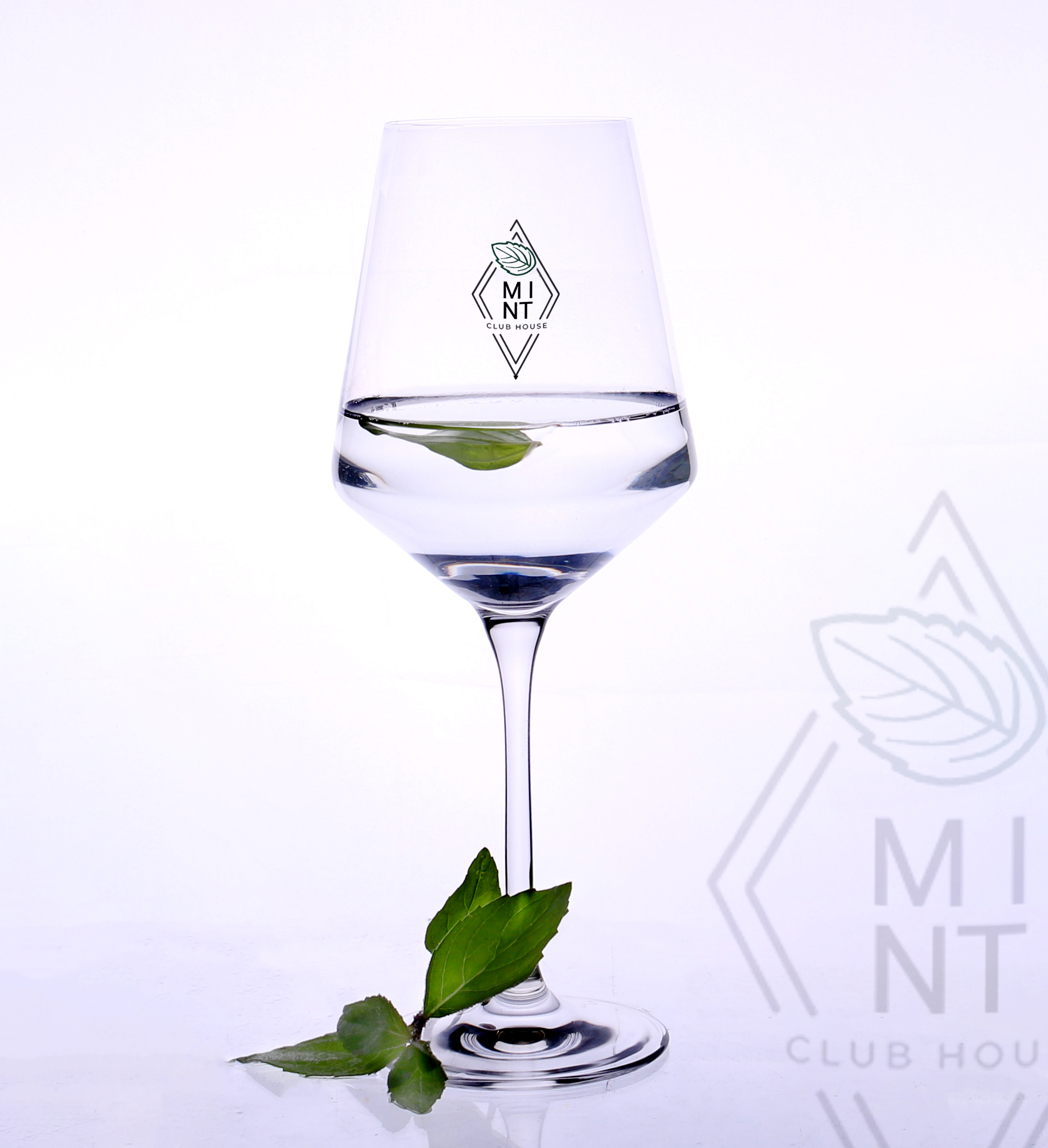 Refined glass for brand communication. An elegant wine glass whose decoration will be a perfect complement to the unique message of the brand.