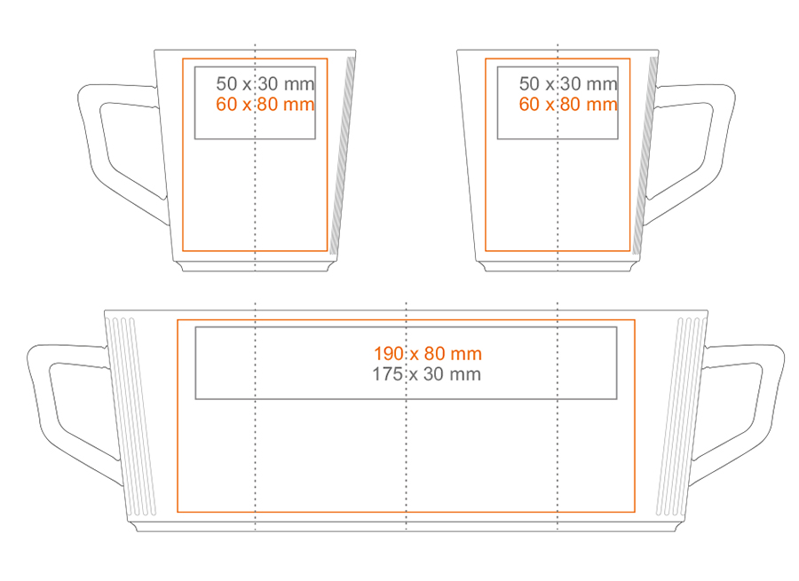 Print on the handle (50x9 mm) Print on the inside (40x20 mm) Print on the bottom inside (ø35 mm) Print on the bottom outside (ø42 mm) Gold print Silver print Hand Made - rim painting Personal print |