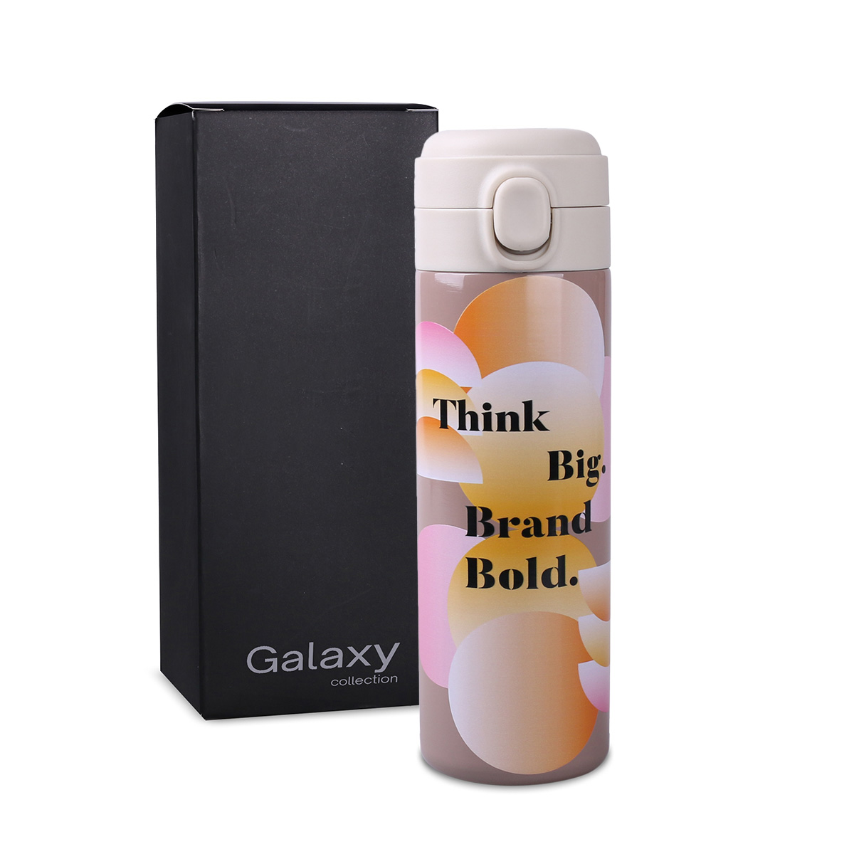 Do you expect an effective promotional gift? Thanks to vacuum insulation and easy „1-click” opening, Orion gives the user joy and comfort of drinking at the highest level. In terms of marketing, you have the opportunity to prepare an effective advertising message by taking advantage of the Galaxy Color decoration, which allows to wrap the body of the mug with any Pantone color. The Orion thermal mug is sold complete with standard unit packaging.