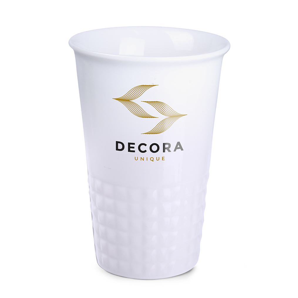Subtle finishing of the lower part of the mug in the form of symmetrical piping. Double-walled porcelain mug for excellent heat insulation.